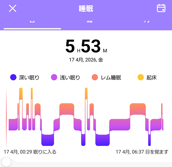 睡眠の質も計れるみたいで、つけて寝てみたら・・・・